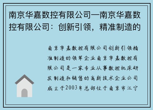 本文将对东莞市数控车床维修进行详细阐述。首先介绍数控车床的基本概念和作用,然后分析东莞市数控车床维修的重要性和需求。接着从设备维护、故障排除、零部件更换、系统升级、技术培训和售后服务等六个方面,详细介绍东莞市数控车床维修的内容和方法。最后总结归纳,强调东莞市数控车床维修的重要性和发展前景。 一、数控车床的基本概念和作用 数控车床是一种通过计算机程序控制工作台和刀具进行自动加工的机床。它具有高精度、...